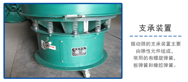 振動篩的支承裝置有吊式和座式兩種。座式安裝較為簡單,且安裝高度低,一般應優(yōu)先選用。振動篩的支承裝置主要由彈性元件組成,常用的有螺旋彈簧、板彈簧和橡膠彈簧。