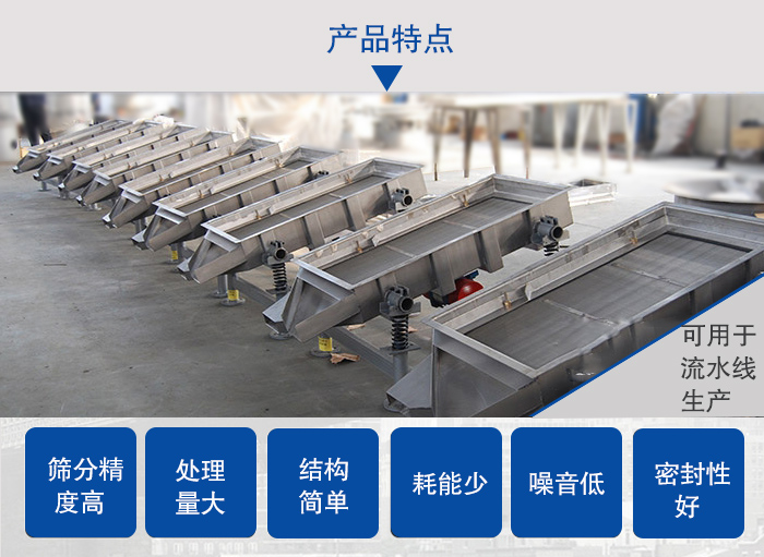 篩分精度高、處理量大、結(jié)構(gòu)簡(jiǎn)單、耗能少、噪音低、篩網(wǎng)使用壽命長(zhǎng)、密封性好、無(wú)粉塵溢散、維修方便、可用于流水線生產(chǎn)中的自動(dòng)化作業(yè)。