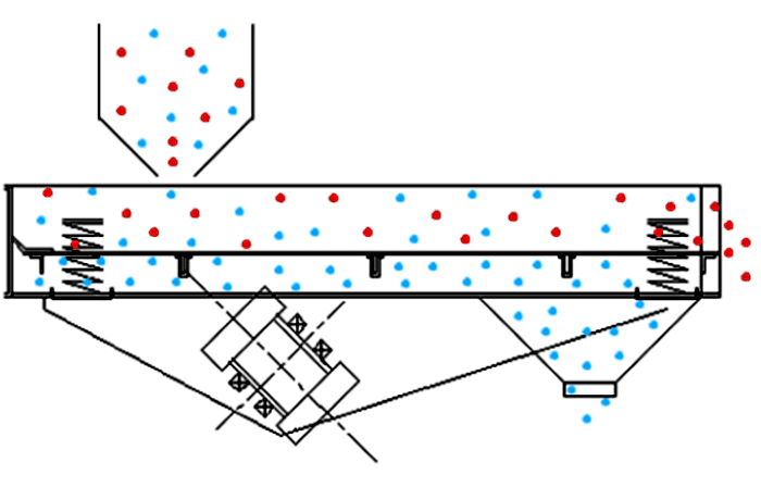 3、閉合電源開關(guān),確認(rèn)振動(dòng)電機(jī)同步反向旋轉(zhuǎn),進(jìn)行10-20分鐘空運(yùn)轉(zhuǎn),設(shè)備在運(yùn)行時(shí)如有異常聲音,應(yīng)迅速關(guān)機(jī)進(jìn)行檢查處理。設(shè)備運(yùn)轉(zhuǎn)正常后,可將少量需篩分的物料通過進(jìn)料口設(shè)入篩機(jī)內(nèi),確認(rèn)物料向出料口方向行進(jìn),然后逐漸增加到所需和所能承受的給料量。