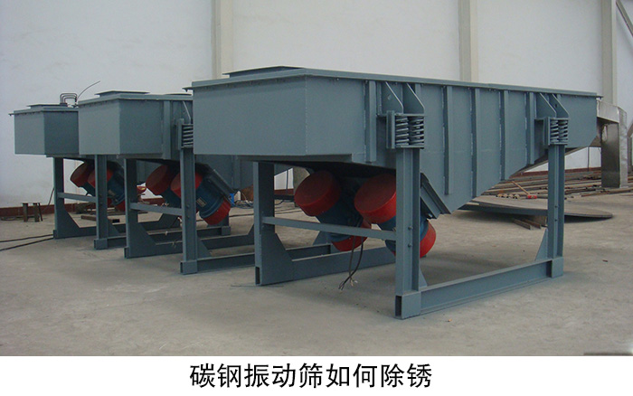 噴砂除銹是采用壓縮空氣為動力,以形成高速噴射束將噴料高速噴射到需要處理的設(shè)備表面,使設(shè)備表面的銹皮等一切污物清除。相較于上面兩種除銹方式,噴砂除銹需要一定的操作技巧,需要有專門的噴砂房和噴砂裝置,且需要將設(shè)備表面進行打磨將設(shè)備表面的銹跡清楚然后涂上一層防護液,然后將設(shè)備整機推入噴砂房進行全方位噴砂處理。噴砂除銹雖然操作繁瑣復(fù)雜,且過程中對環(huán)境產(chǎn)生額外的粉塵污染,但是除銹效果十分,經(jīng)過噴砂處理的碳鋼振動篩不僅外觀精美而且對設(shè)備的使用壽命具有更好的提升效果。