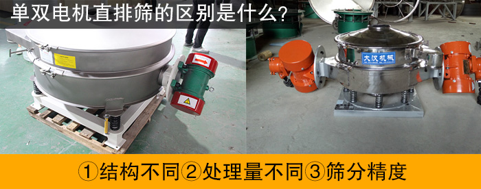 單電機(jī)的直排篩只能用來(lái)簡(jiǎn)單的易于通過(guò)篩網(wǎng)的物料的粗略篩分,篩分精度低;雙電機(jī)的直排篩由于其區(qū)別于單電機(jī)的直排式設(shè)計(jì),過(guò)篩網(wǎng)的通過(guò)率更高,篩分精度更高。