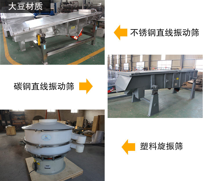 大豆的形態(tài)為種顆粒狀,旋振篩和直線振動(dòng)篩都是篩分大豆的上乘選擇,旋振篩是高精度的篩分設(shè)備,篩分精度高,噪音低,設(shè)計(jì)精巧,且網(wǎng)孔不堵塞,粉末不飛揚(yáng),篩機(jī)可安裝至五層,分別曬出不同規(guī)格的大豆,價(jià)格相對(duì)較低;直線振動(dòng)篩則具有耗能低,產(chǎn)量高,結(jié)構(gòu)簡單的特點(diǎn),且其維修方便,全封閉結(jié)構(gòu),沒有粉塵的溢散,能與生產(chǎn)線相互連接,適合大規(guī)模、大產(chǎn)量的流水作業(yè),但是價(jià)格會(huì)比旋振篩高一些。