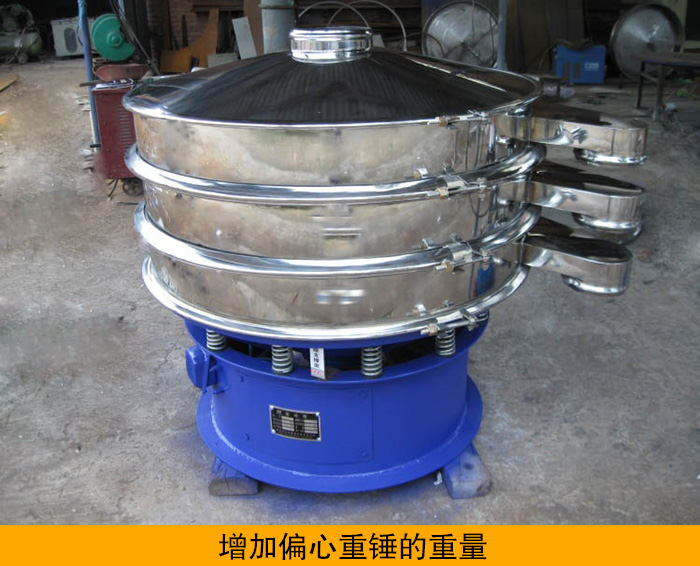 增加偏心重錘的重量,就可以增加整機(jī)的激振力,用戶可以根據(jù)振動(dòng)篩的層數(shù),不同的物料比重,按照操作說明規(guī)范適量的增加重錘的重量,從而使振動(dòng)篩和物料都能達(dá)到自己想要的篩分效果。