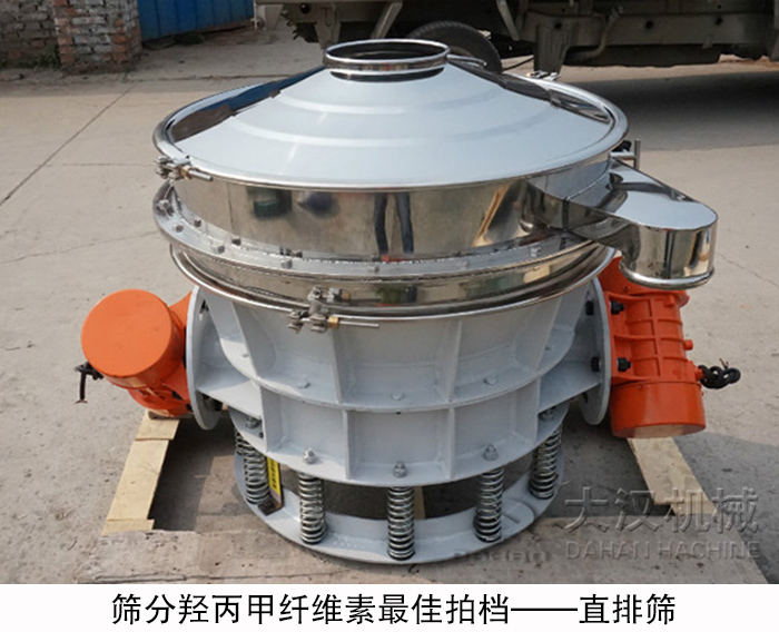 羥丙甲纖維素是纖維素中的一種,是從精致棉纖維素為原材料提取出堿纖維,然后制得的白色或類白色粉末狀物料,密度為1.39g / cm3,通常行業(yè)標(biāo)準(zhǔn)要求的羥丙甲纖維素顆粒度為100目通過(guò)率大于98.5%,80目通過(guò)率100%,特殊規(guī)格的粒徑40~60目。那么由此我們可以知道,通常我們篩分的羥丙甲纖維素的目數(shù)為80目左右,因此大漢機(jī)械據(jù)此給出了適合其篩分作業(yè)的設(shè)備——羥丙甲纖維素直排篩。