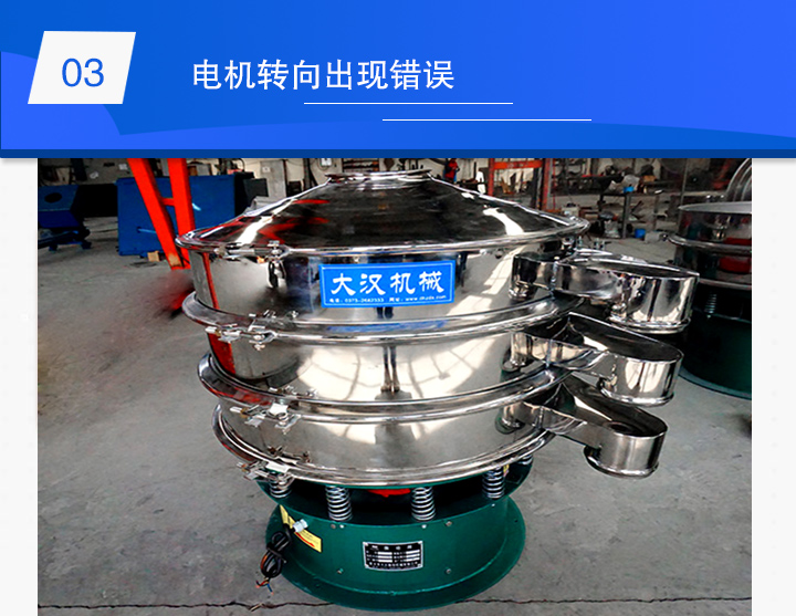 解決方法:檢查并矯正漿液振動(dòng)篩振動(dòng)電機(jī)的轉(zhuǎn)向是否正確。首先卸下振動(dòng)電機(jī)的護(hù)罩,檢查兩個(gè)電機(jī)的偏心塊旋向是否均向外側(cè)旋轉(zhuǎn);其次,如果轉(zhuǎn)向錯(cuò)誤,請(qǐng)調(diào)換電控箱進(jìn)線電源中的任意兩根相線。