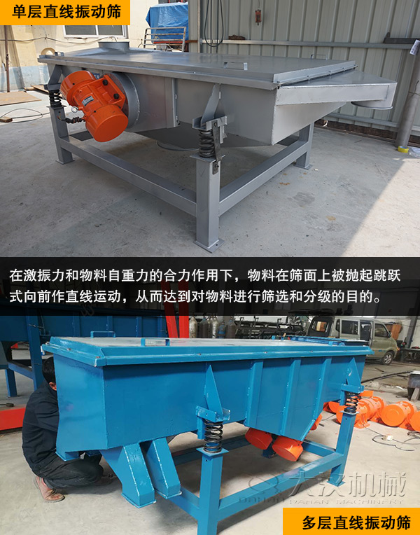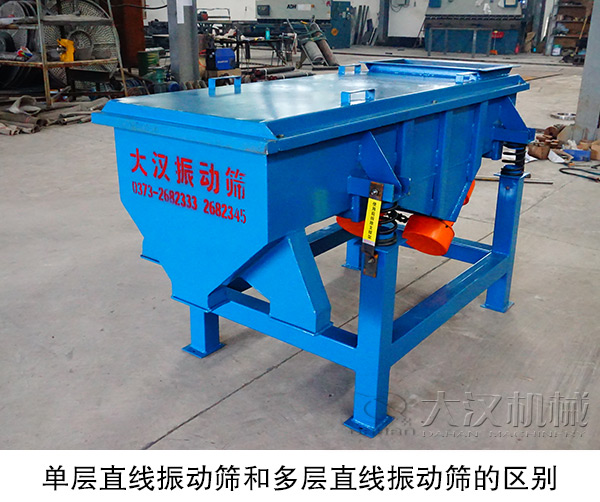 下面我來為大家解釋一下,為什么會這樣劃分,單層直線振動篩就是在除雜的過程中簡單的將大于或者是小于的物料給除掉就行了,多層直線振動篩是因?yàn)樵谖锪虾Y分過程中,用戶想要得到的物料既小于且大于,用戶想要的到的篩分物料是取就于中間的,所以需要多層直線振動篩來進(jìn)行除雜篩分,因?yàn)槿绻脝螌又本€振動篩的話達(dá)不到用戶想要得到的結(jié)果,在除雜過程中除雜的不夠干凈。所以直線振動篩就分為單層和多層的。
