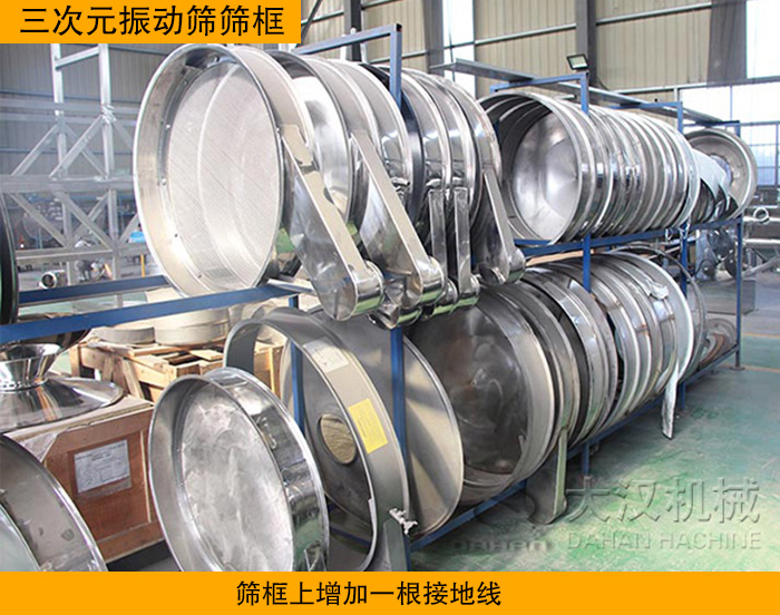 因為靜電的是由于三次元振動篩在工作時,物料與物料、篩網(wǎng)和篩框之間的振動摩擦而產(chǎn)生的,繼而引起了卡堵網(wǎng)的問題。但是在篩框上增加一根接地線,就可以將產(chǎn)生的靜電導入地面,解決掉靜電的問題。