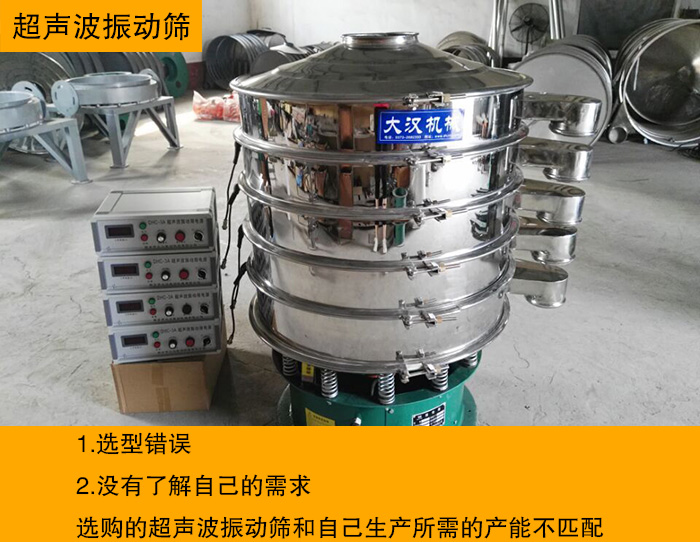 超聲波振動篩在選購時,如果沒有和廠家進行詳細溝通,不了解超聲波振動篩的特點,自身物料的特性及要求產(chǎn)量就購買了設備,這樣的生產(chǎn)出來的振動篩就很容易出現(xiàn)與需求不符合,從而出現(xiàn)振動力過小,達不到生產(chǎn)要求的問題。所以在選購振動篩分設備時應提供詳細的物料特性及要求產(chǎn)量,這樣銷售人員才能根據(jù)詳細的參數(shù)為您推薦合適的機型。