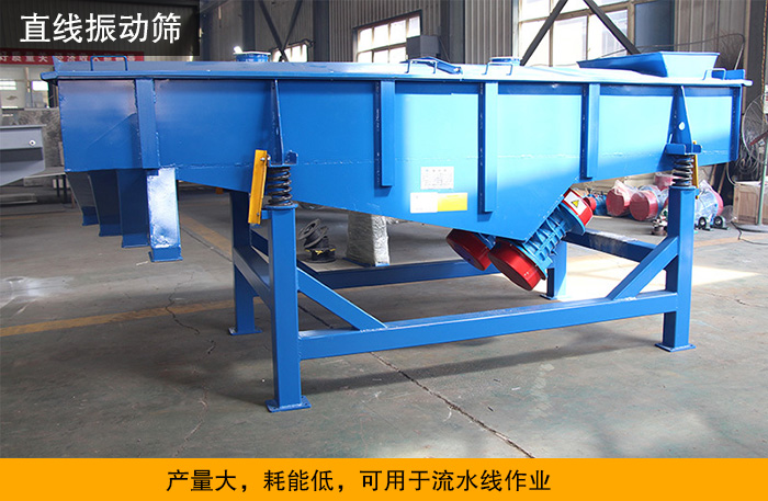 直線振動(dòng)篩是利用振動(dòng)電機(jī)作為振動(dòng)源,使物料在篩網(wǎng)上被拋起,同時(shí)向前做直線運(yùn)動(dòng),菜籽粉在給料機(jī)上均勻地進(jìn)入篩分機(jī)的進(jìn)料口,通多多層篩網(wǎng)產(chǎn)生多種規(guī)格的篩上物和篩下物,分別從各自的出口排出。其大產(chǎn)量,耗能低的特點(diǎn),非常適合菜籽粉的大量篩分,并且,直線振動(dòng)篩全封閉結(jié)構(gòu)不會(huì)有粉塵溢散,非常適合菜籽粉的生產(chǎn)。