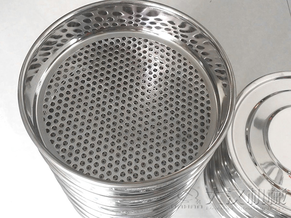 2、 篩框平整光滑,并且能方便地與篩框基本尺寸相同的其他篩、蓋、接料筒等套疊在一起。篩網(wǎng)與篩框間的連接能防止待篩物料的泄漏。