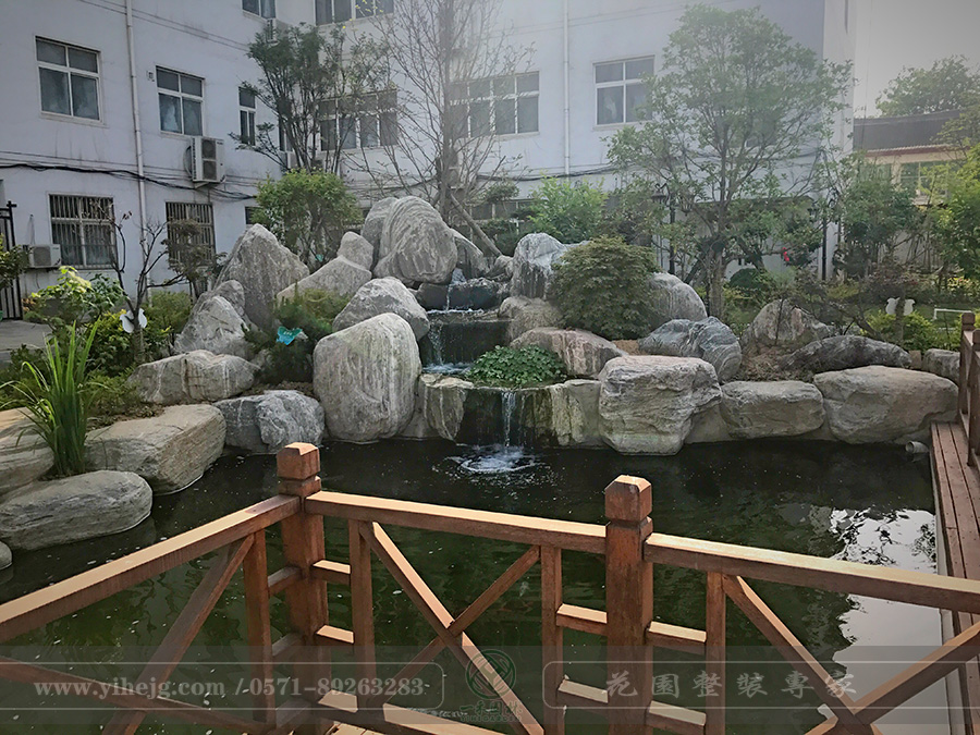 某政府后院假山流水|錦鯉池過濾水質處理|庭院花園景觀設計