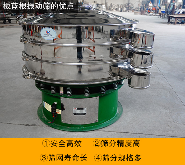 不銹鋼旋振篩嫩夠篩分500目或者0.028mm,對(duì)于板藍(lán)根顆粒40—80目的粒度能夠有效篩粉。