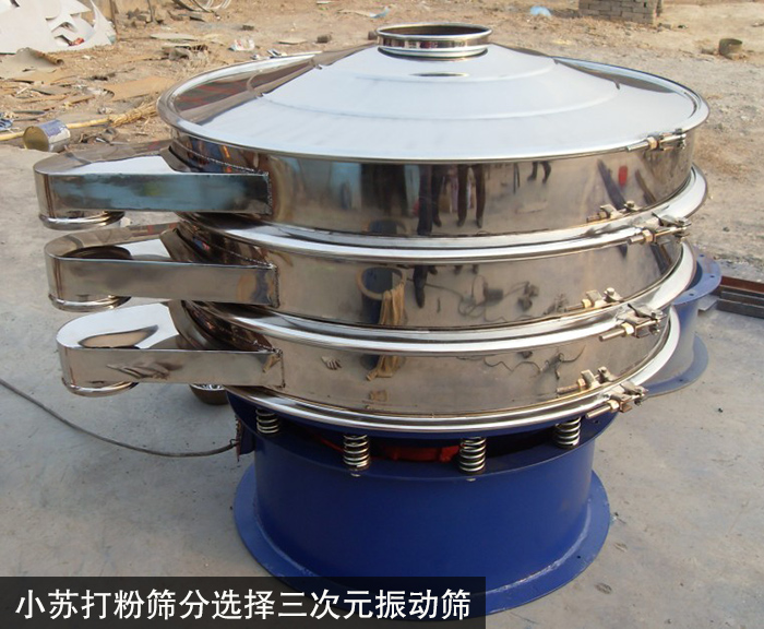 大漢機械的技術(shù)人員根據(jù)小蘇打粉末狀形態(tài),以及其篩分精度,認為三次元振動篩非常適合其篩小蘇打粉的篩分作業(yè)。