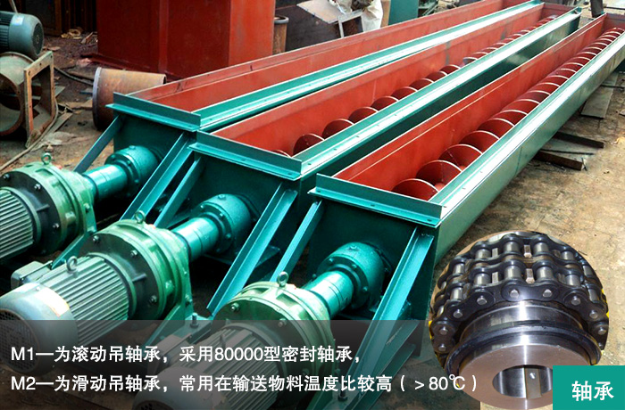 M1—為滾動(dòng)吊軸承,采用80000型密封軸承,軸蓋上另有防塵密封結(jié)構(gòu),常用在不易加油,不加油或油對(duì)物料有污染的地方,密封效果好,吊軸承壽命長(zhǎng),輸送物料溫度≤80℃。