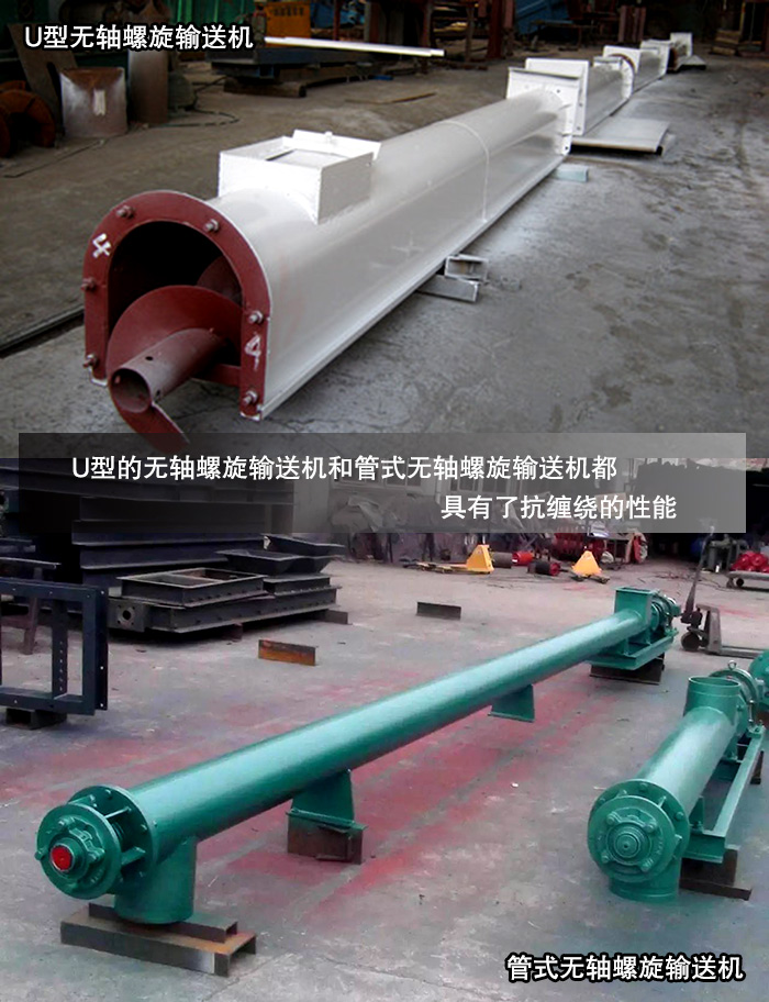 U型:U型的無(wú)軸螺旋輸送機(jī)相對(duì)比U型螺旋輸送機(jī),也就是在U型螺旋輸送機(jī)的基礎(chǔ)上葉片上少了中心,增加其抗纏繞的性能。