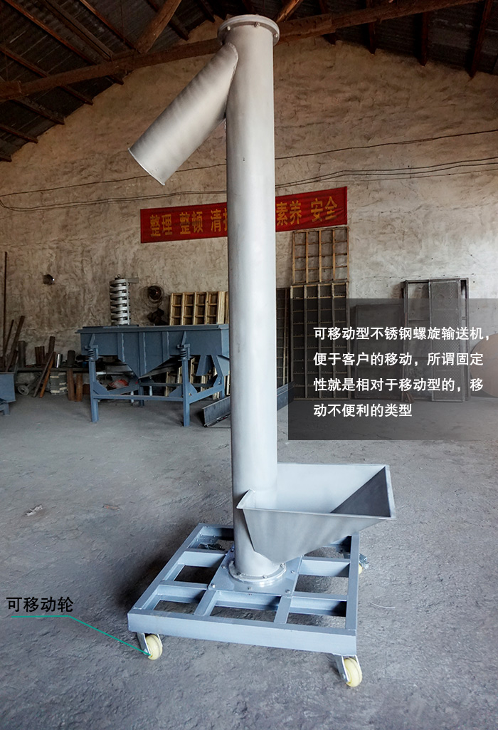 可移動(dòng)型:可移動(dòng)型不銹鋼螺旋輸送機(jī),是根據(jù)客戶(hù)的需求進(jìn)行改進(jìn)的,也是便于客戶(hù)的移動(dòng)。